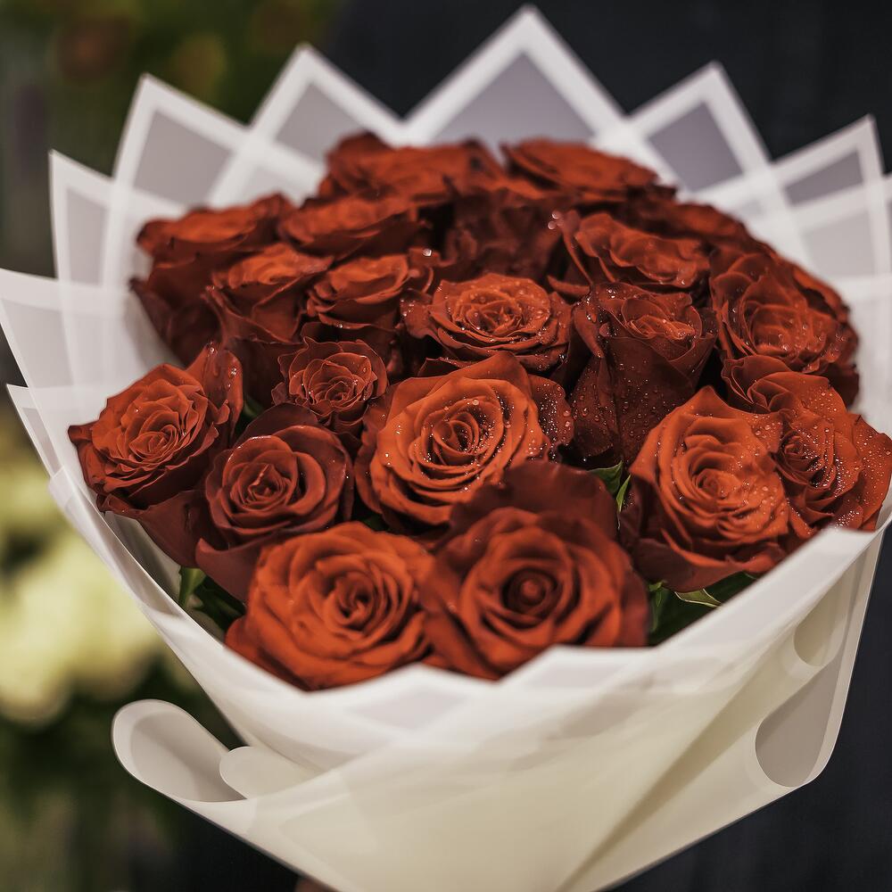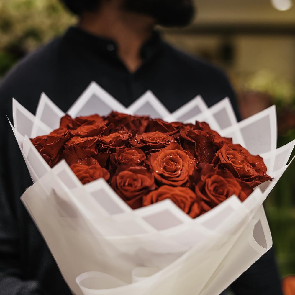Immerse yourself in the symphony of passion with this mono bouquet of 21 brilliantly blushing red roses. Each bloom exudes sophisticated elegance, making it a perfect spectacle to behold. Be it a declaration of love, a birthday wish or simply brightening up a dear ones day, this radiant assembly of red roses is sure to create unforgettable moments.