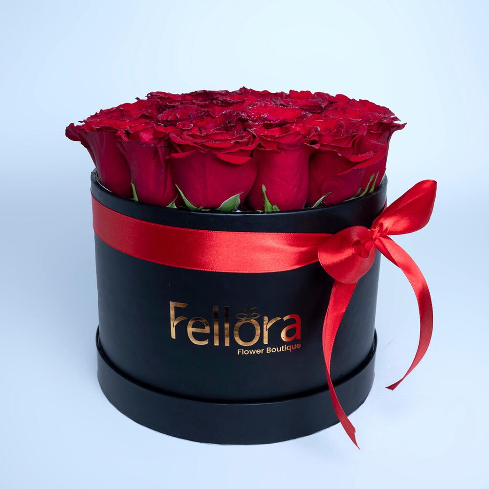 Make Valentine’s Day unforgettable with 21 elegant red roses beautifully arranged in a luxury black round box. Each rose represents love and devotion, finished with a romantic red ribbon for a premium touch. Perfect Valentine’s Day gift to express deep emotions, passion, and timeless romance.