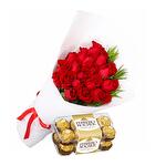 21` red roses and Ferrero Rocher Chocolate