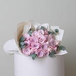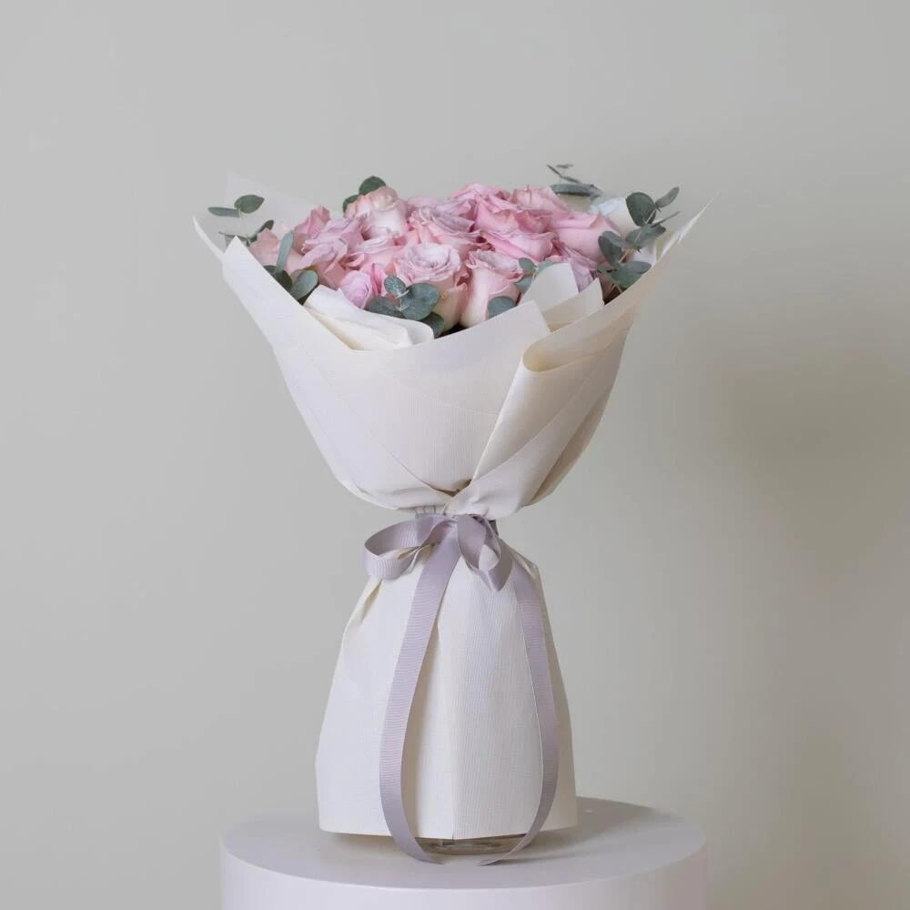 Presenting our breathtaking Pink Rose Splendor bouquet, a mesmerizing arrangement designed to evoke pure romance and joy. This exquisite bouquet features numerous pristine pink roses, each delicately chosen for its captivating beauty and symbolizing love and admiration. The flowers are elegantly wrapped in white paper and secured with a soft ribbon.