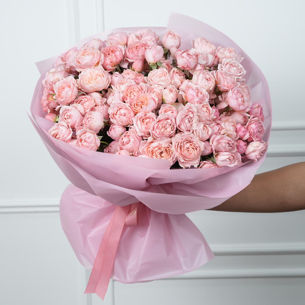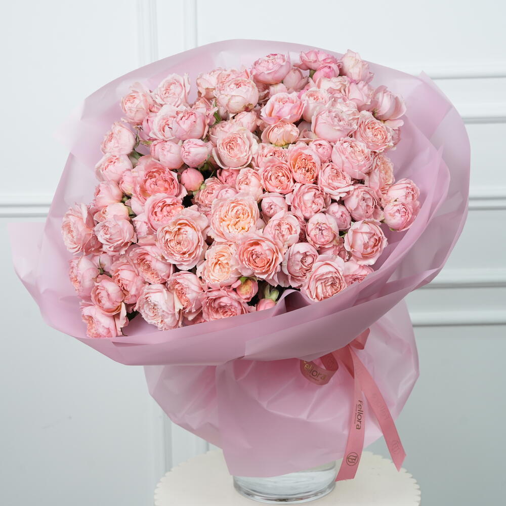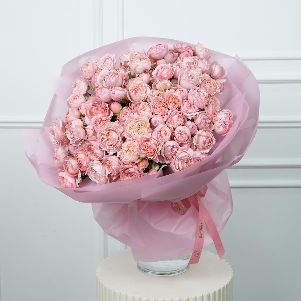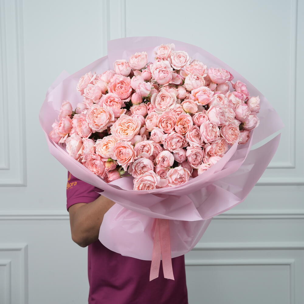 Premium 25 Julieta Spray Peony Roses bouquet featuring soft blush, ruffled blooms in a luxurious hand-tied arrangement. Bouquet size: Height 40 cm, Width 45cm — full, elegant, and perfectly balanced. Wrapped in 5layers of premium wrapping paper and finished with one elegant ribbon. Ideal for weddings, anniversaries, and romantic occasions with same-day flower delivery available. 🌸
