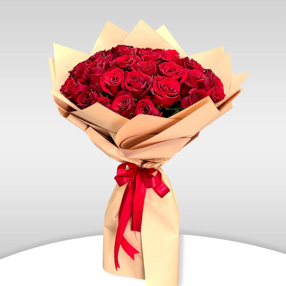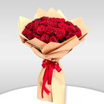 25 Red Rose, Brown Paper Cover, Red Ribbon