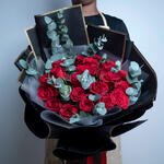 Bouquet of 25 red roses with eucalyptus leaves