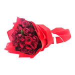 Bouquet of 25 Red Roses in Red Fabric Wrapping.