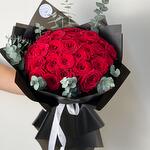 Red rose - 25 pcs Eucalyptus - 1 pcs black wrapping - 1 pcs