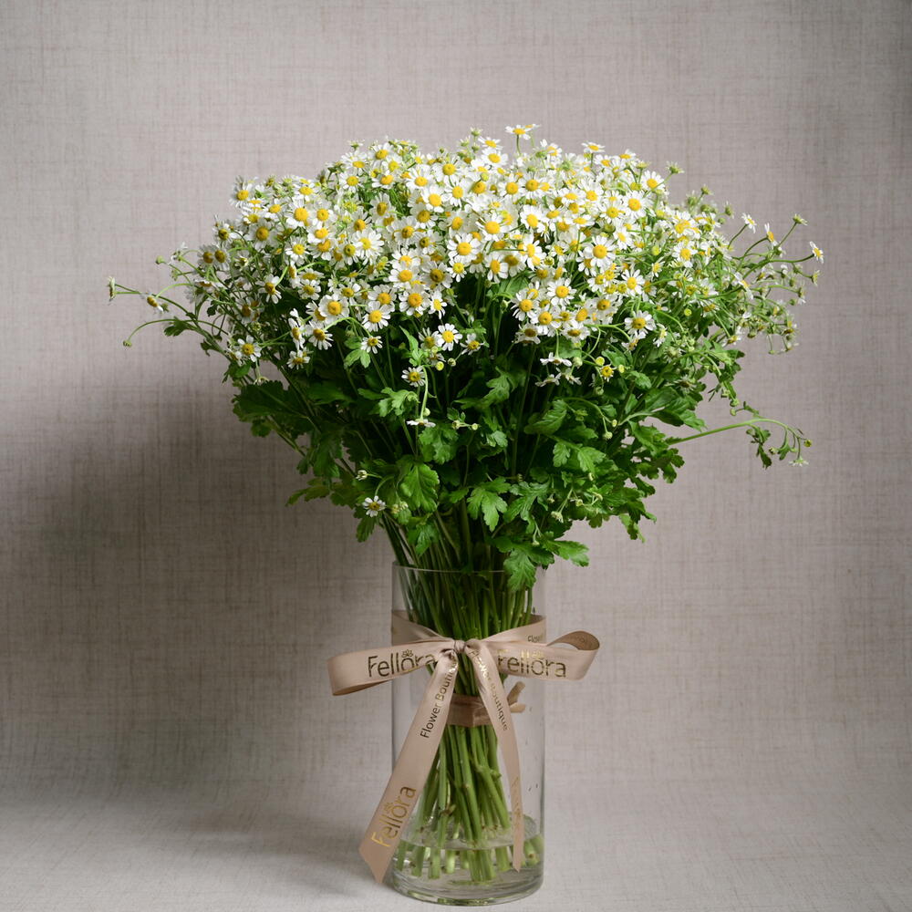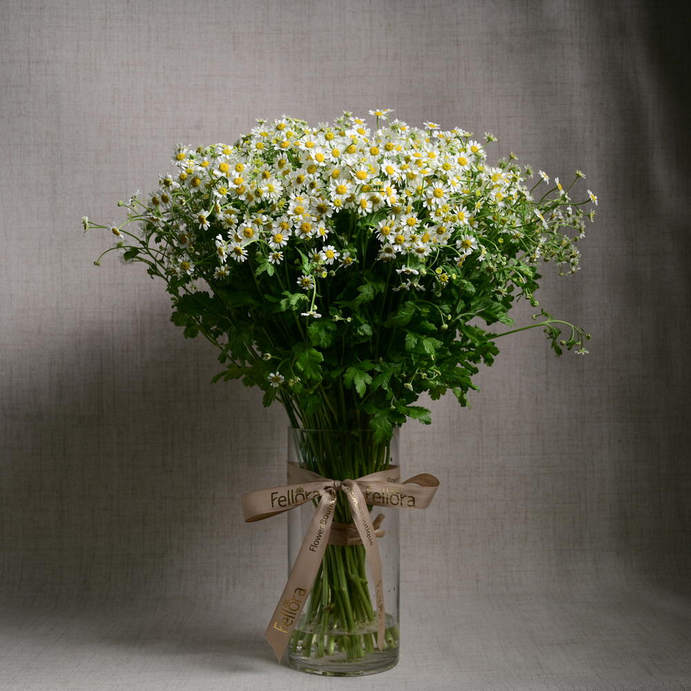 Ribbon - 1 pcs tanacetum - 25 pcs cylinder glass vase - 1 pcs