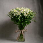 This exquisite Mono Bouquet composes of 25 stems of vibrant Tanacetum, beautifully arranged in a sleek Cylinder Glass Vase. The ensemble is tastefully completed with a decorative ribbon to give it an elegant finish. This bouquet offers a striking display, perfect to liven up any space or occasion.