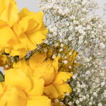 Gypsophila - 15 pcs yellow roses - 25 pcs hydration pack - 1 pcs personalized message envelope card - 1 pcs rose art tag - 1 pcs branded leather white box - 1 pcs