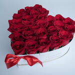 Red rose - 29 pcs ribbon bow - 1 pcs white heart shaped box - 1 pcs
