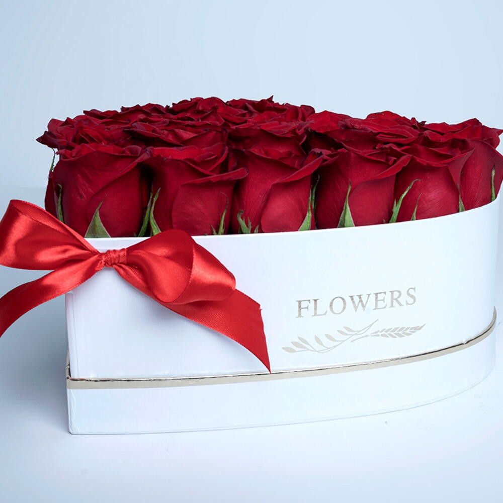 Red rose - 29 pcs ribbon bow - 1 pcs white heart shaped box - 1 pcs