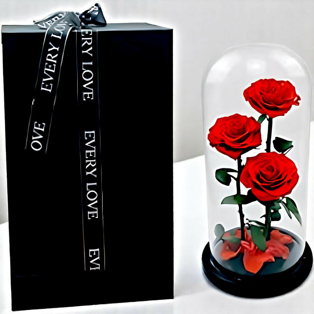 Red For Ever Rose set of 3 pcs With Glass Dom. Real Rose Which was treated in a special Way & it will Last more than One Year.