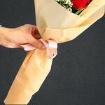 Red rose - 3 pcs Ribbon - 1 pcs Wrapping - 1 pcs gypso - 1 pcs areca palm leaves - 1 pcs