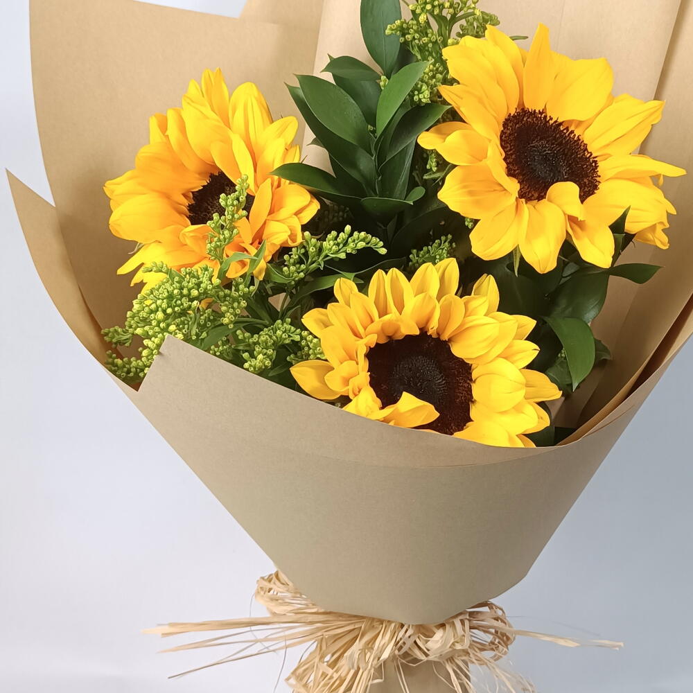 Solidago - 3 pcs sunflower yellow - 3 pcs ruscus leaves - 3 pcs