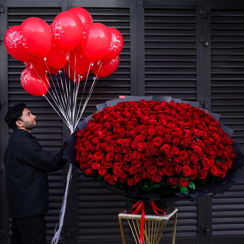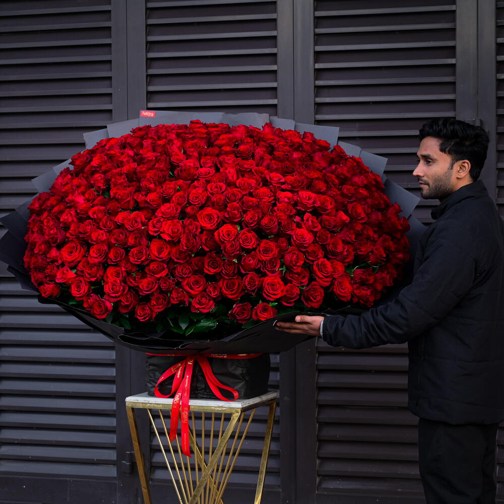 Celebrate love, passion, and elegance with our breathtaking 301 Red Premium Roses. This luxurious arrangement, consisting of 301 vibrant red roses, creates a stunning and romantic display, perfect for special events, large celebrations, or as a grand gesture of love. Bouquet Includes: 301 Premium Red Roses. The 301 Red Premium Roses symbolize deep love, admiration, and devotion, making it the perfect choice for anniversaries, weddings, or a special occasion that requires an unforgettable floral statement. Each rose is carefully selected for its freshness and vibrancy, ensuring that your bouquet remains stunning and fresh for days. Whether used as a grand centerpiece or as a lavish gift, this incredible collection of red roses will leave a lasting impression. At Fellora Flower Boutique, we are dedicated to offering only the highest-quality flowers, ensuring that every rose in your bouquet remains beautiful and vibrant.