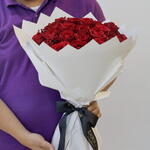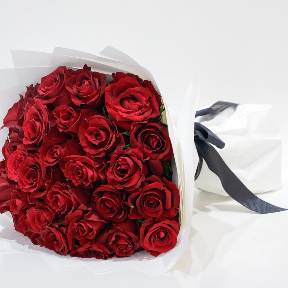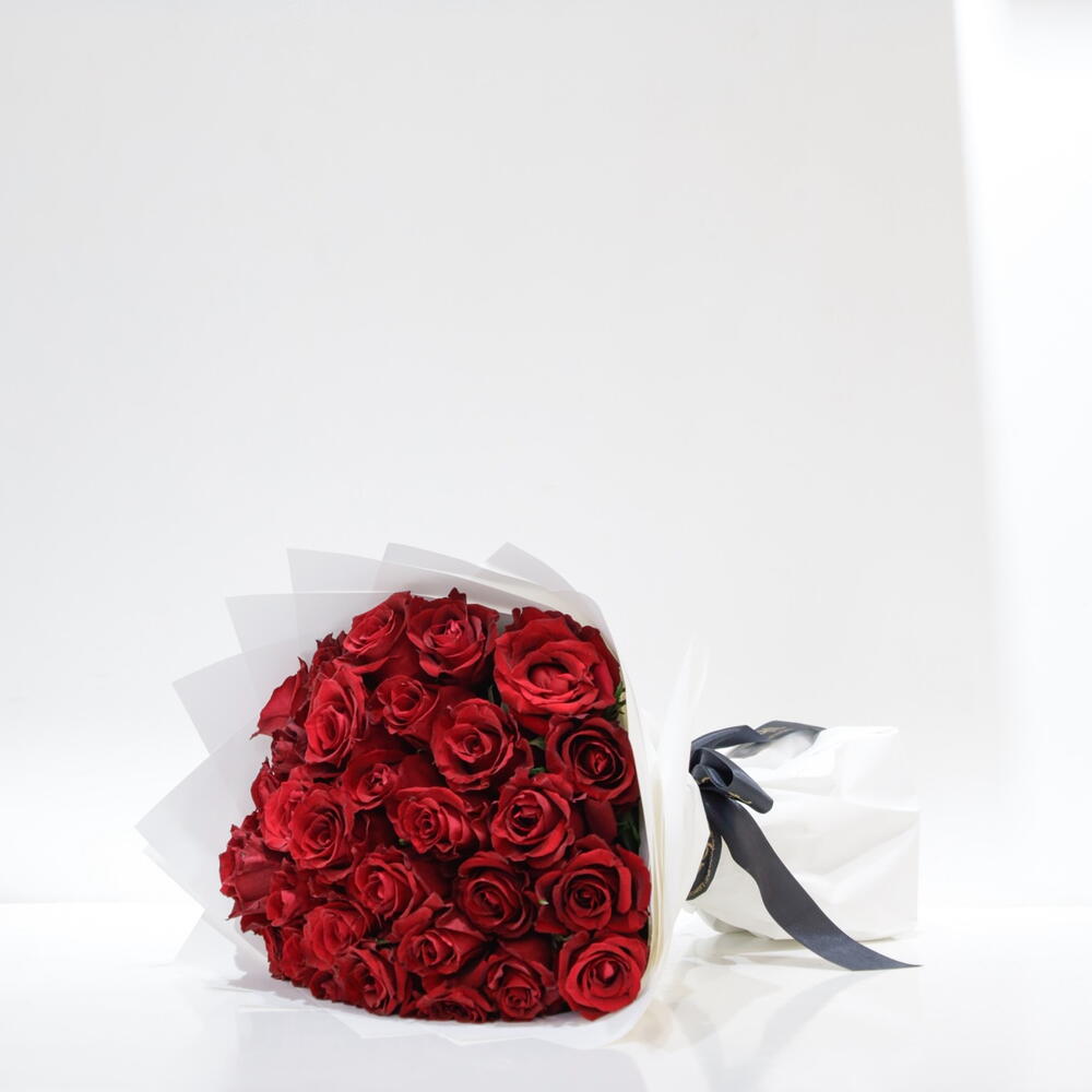Step into the world of timeless elegance with this Mono Bouquet, featuring 31 delicately handpicked ever-red roses. Each rose is wrapped individually with 8 pieces of quality paper that adds to its charm and aesthetic appeal. The arrangement is further adorned with a satin ribbon, that beautifully ties the bouquet together, rendering it the perfect choice for heartfelt gestures and special occasions Here are some essential care tips to keep your fresh flower bouquet looking vibrant and lasting longer: 1. Trim the Stems Cut about 1-2 inches from the bottom of each stem at a 45-degree angle using sharp scissors or pruning shears. This allows the flowers to absorb water more effectively and prevents air bubbles from forming in the stems. 2. Remove Excess Foliage Remove any leaves that will be submerged in water to prevent rot and bacterial growth. This keeps the water cleaner and prolongs the life of the bouquet. 3. Use Clean Water Fill a clean vase with lukewarm water, which helps flowers absorb it better. If the bouquet came with flower food, dissolve it in the water according to the instructions to provide extra nourishment. 4. Change the Water Regularly Change the water every 1-2 days to keep it fresh and free from bacteria. Be sure to clean the vase with soap and water each time you change the water. 5. Keep Flowers in a Cool Location Place the bouquet in a cool, shaded area away from direct sunlight, heat sources, or drafts. Extreme temperatures can cause flowers to wilt faster. 6. Avoid Ethylene-Producing Fruits Keep the bouquet away from fruits, vegetables, and other ethylene-producing items, as this gas can shorten the flowers’ lifespan. 7. Spray the Petals Lightly mist the petals with water to keep them hydrated, especially in dry conditions. Be gentle to avoid damaging delicate petals. 8. Remove Wilting Flowers As flowers start to wilt, remove them from the bouquet to prevent them from affecting the others. This also keeps the bouquet looking fresh for longer