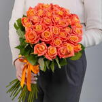 orange ribbon - 1 pcs orange roses - 35 pcs
