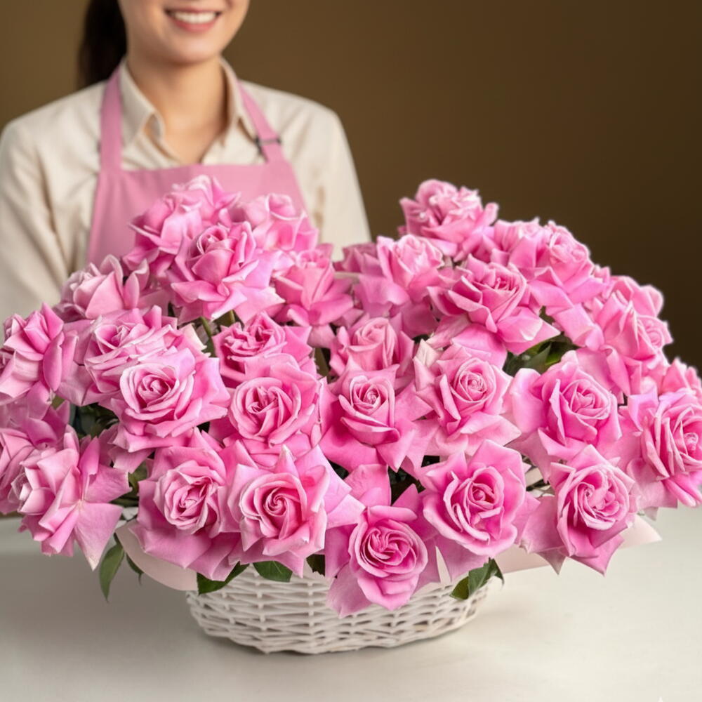 35 Premium Open Pink Extra Rose Basket- Ecuador