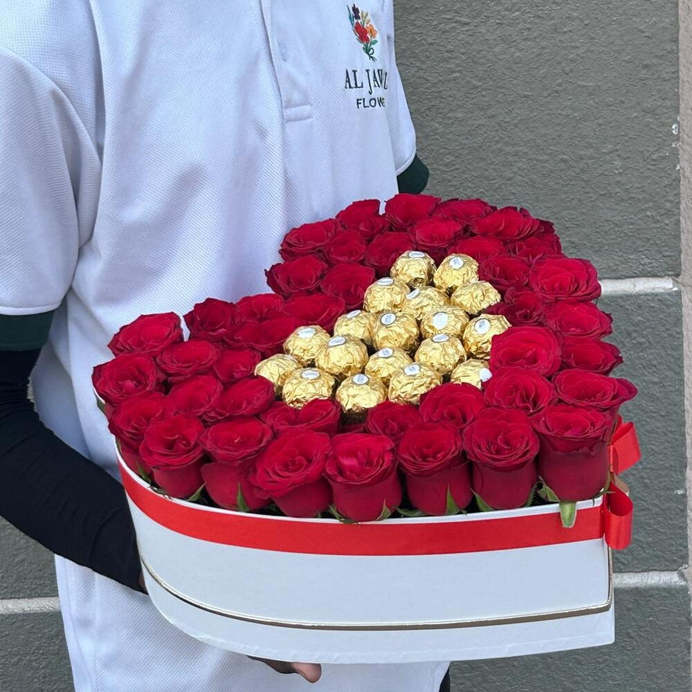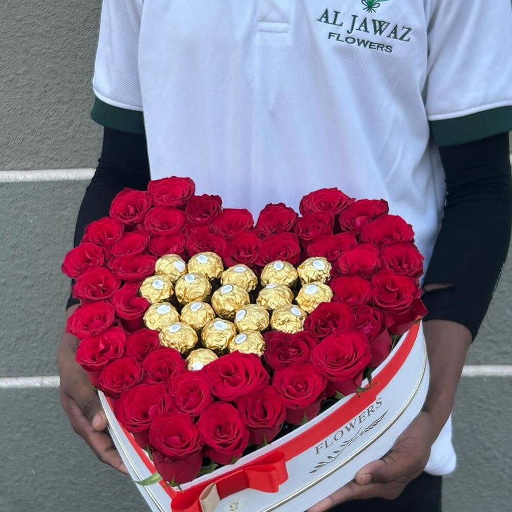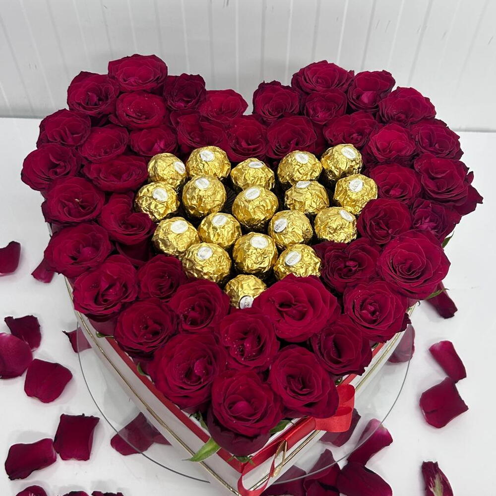 25 Red Rose And Ferrero Rocher Heart Shape Box 020
