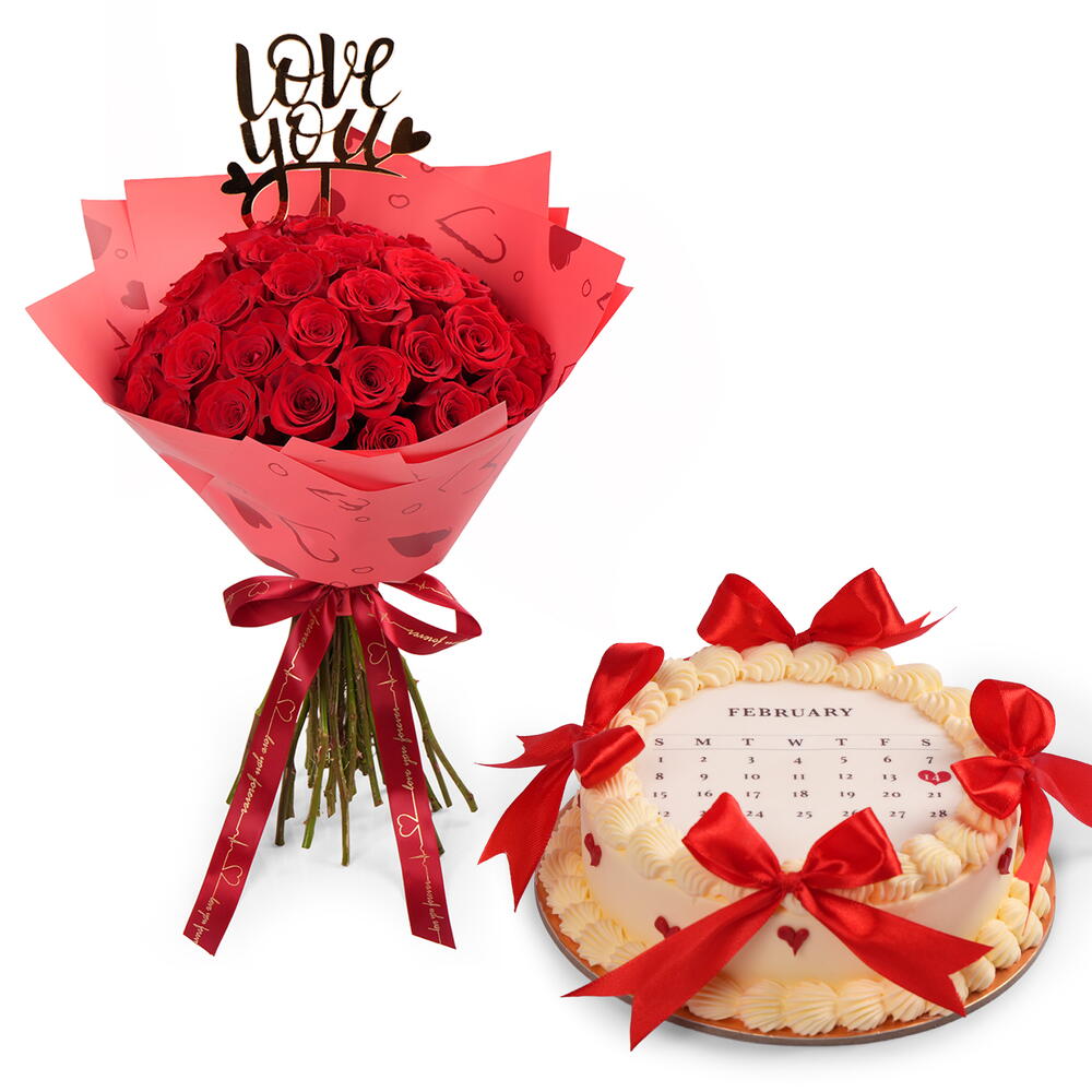35 Red Roses of Love Bouquet with Red Velvet Cake