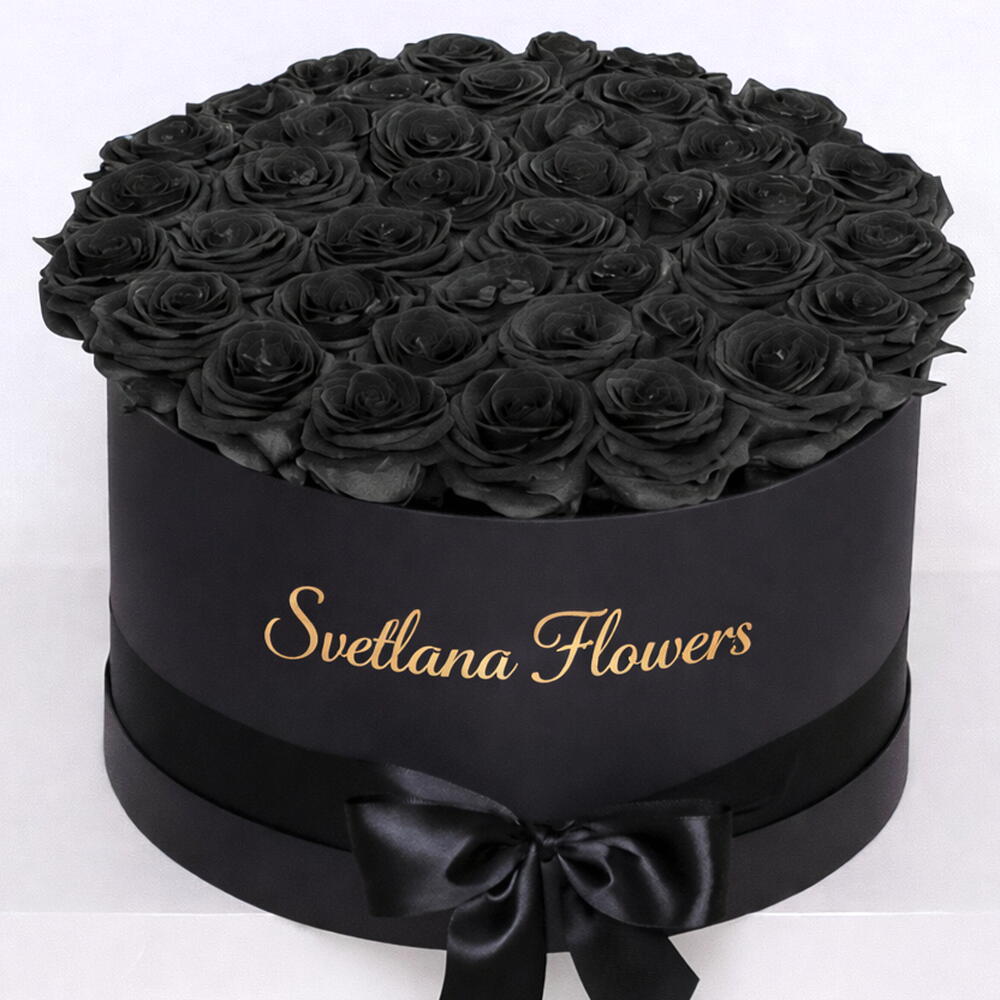 A dramatic and elegant arrangement featuring 41 black roses beautifully presented in a sleek black box. Perfect for making a bold statement, expressing deep admiration, or celebrating special occasions with sophistication