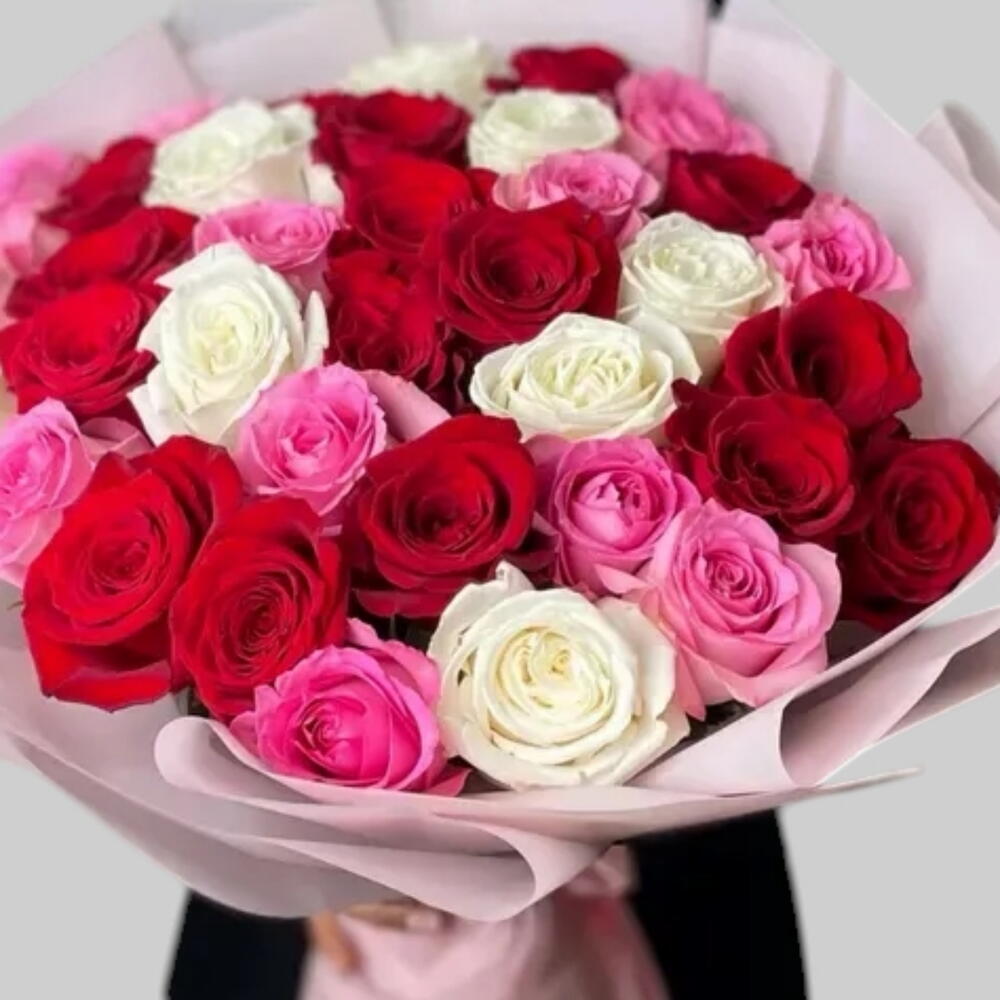 red roses - 20 pcs pink roses - 15 pcs cream white roses - 14 pcs