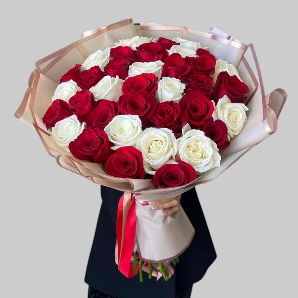 red roses - 25 pcs white roses - 24 pcs
