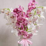 A stunning arrangement featuring a blend of delicate pink and white Cymbidium orchids, bringing a touch of elegance and sophistication to any setting.