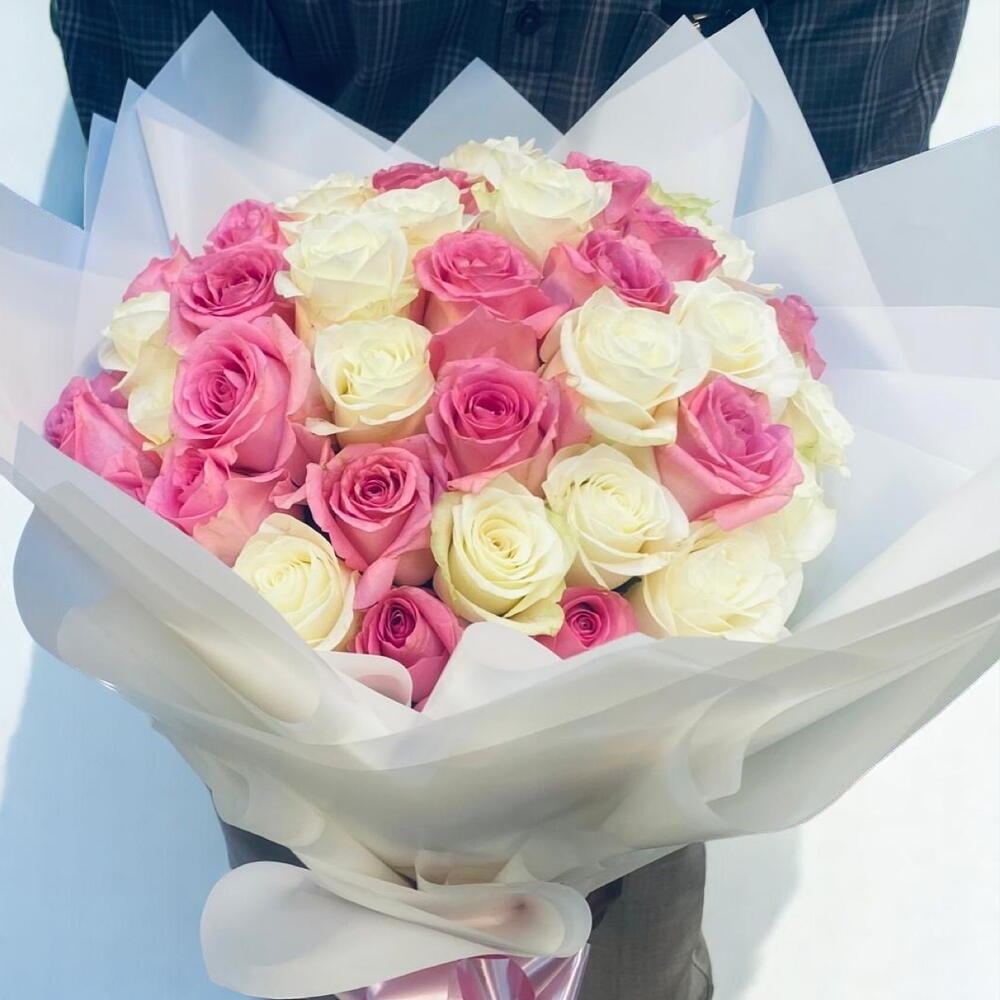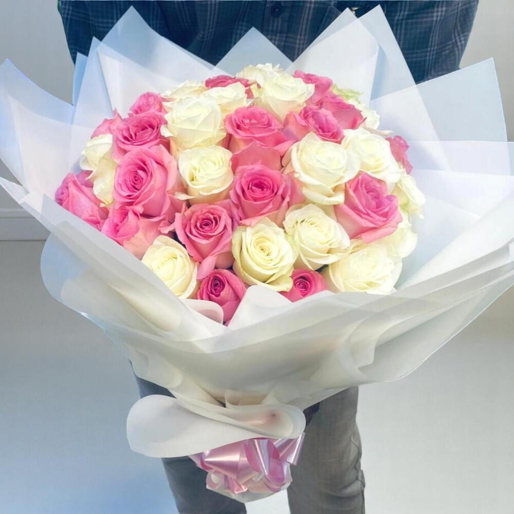 pink roses - 25 pcs white roses - 25 pcs