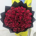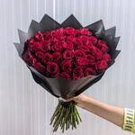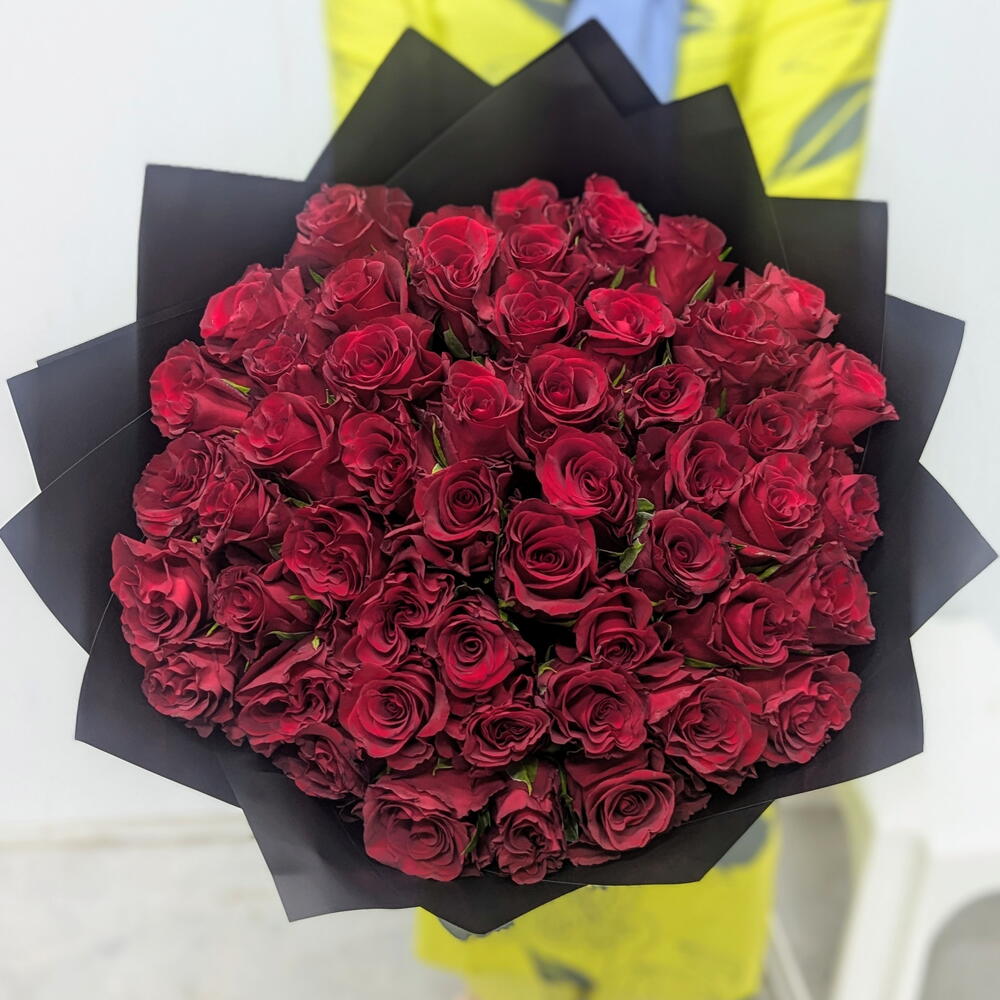 Immerse yourself in the lush allure of this Mono Bouquet, composed of fifty exquisite Red Roses. Hand-selected for their radiant beauty, each bloom stands as a captivating testament to affection and elegance. A premiere choice for any occasion, this bouquet brings an undeniable touch of luxury to every sentiment it conveys.