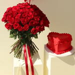 Red roses Set of - 50 red premium roses, cake with red velvet filling and heart shaped balloons