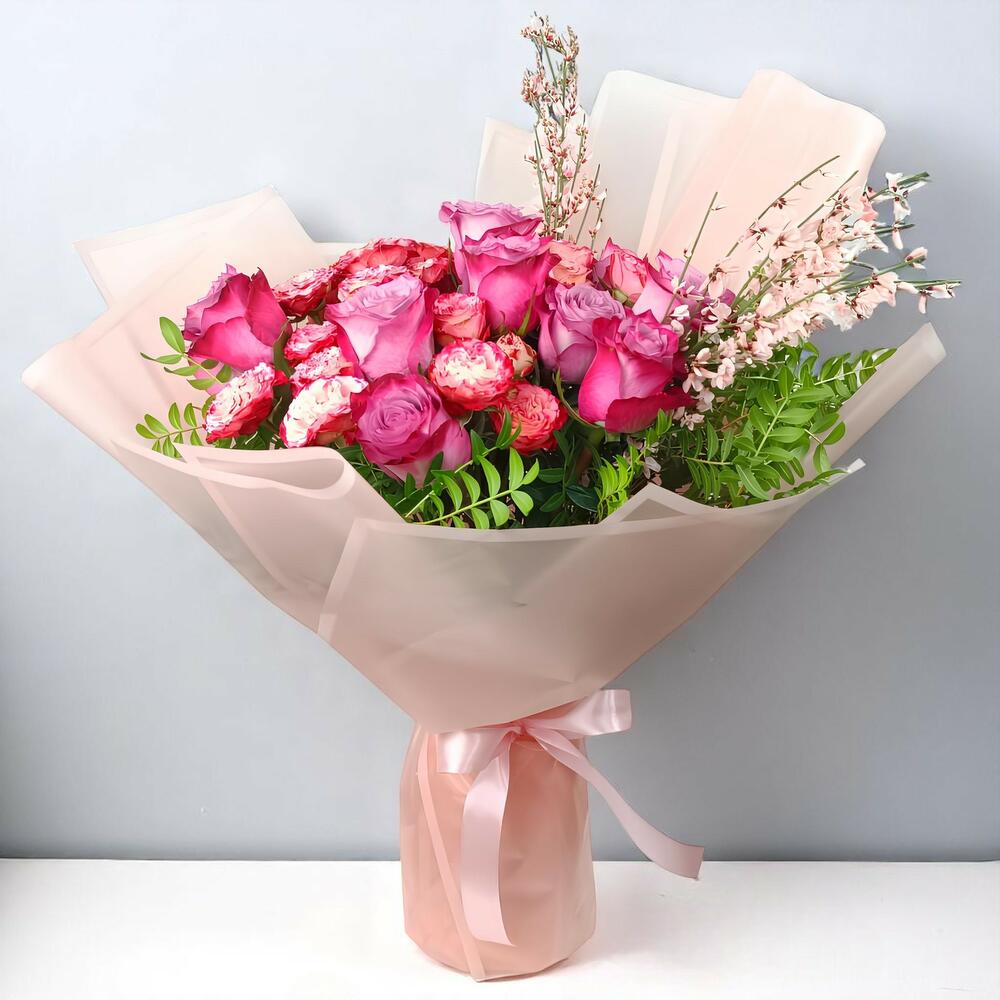 rose Deep purple - 11 pcs Pistacia - 5 pcs genista pink - 2 pcs rose spray sunset - 5 pcs