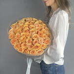 Illuminate your day with these charming peach roses. Our florists special includes a bouquet of 51 vibrant blooms, each piece naturally grown and handpicked to ensure the highest quality. Embodying softness and warmth, these roses will add a touch of elegance to any room or radiant sparkle to any event. An impeccable choice for those who appreciate the subtle beauty of nature.