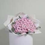 Presenting our breathtaking Pink Rose Splendor bouquet, a mesmerizing arrangement designed to evoke pure romance and joy. This exquisite bouquet features numerous pristine pink roses, each delicately chosen for its captivating beauty and symbolizing love and admiration. The flowers are elegantly wrapped in white paper and secured with a soft ribbon.