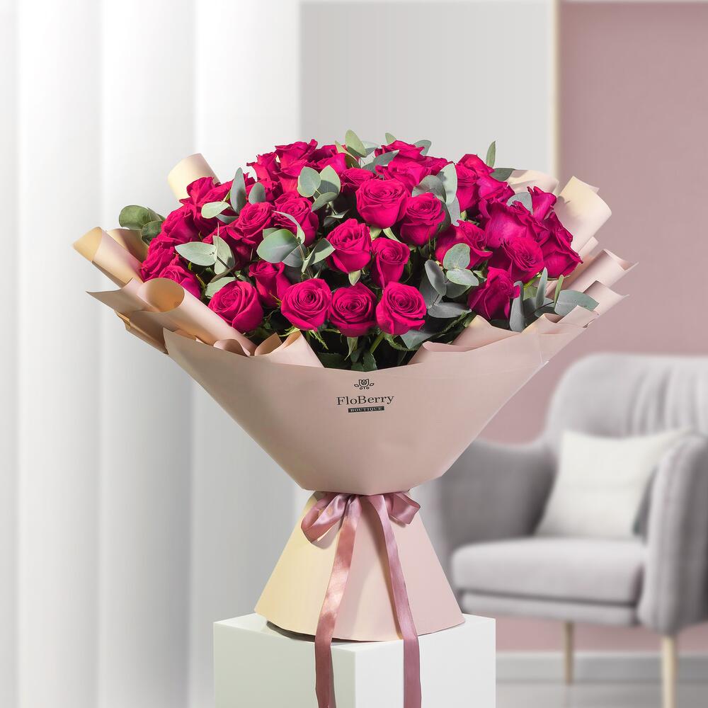 Introducing our magnificent 51 Roses Bouquet, an opulent creation meticulously designed by our skilled florists. Overflowing with vibrant roses and lush greenery, this lavish arrangement embodies elegance and heartfelt emotion on a grand scale. Customize your gift by selecting from our range of wrapping options, adding a personal touch to this breathtaking display that surpasses words. Each bloom and verdant accent is thoughtfully placed to craft a profound expression of love, admiration, or gratitude. This extraordinary bouquet amplifies sentiments, enveloping the recipient in deep warmth and appreciation. Experience the abundance of 51 roses, paired with lush greenery, in a truly grand and meaningful gift that speaks volumes without needing a single word.