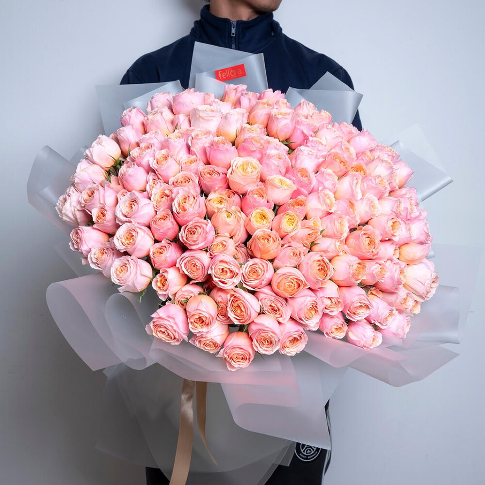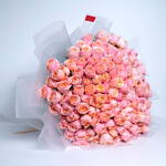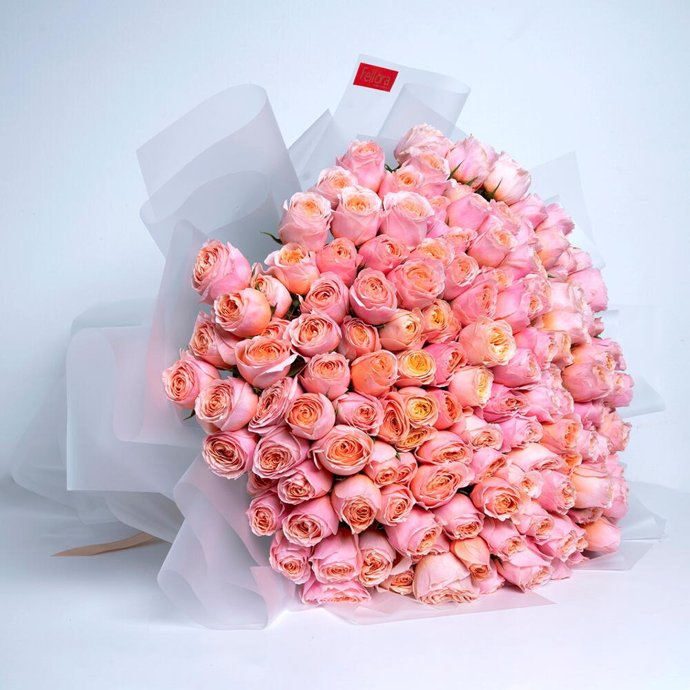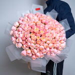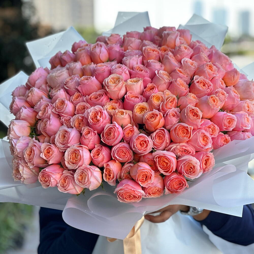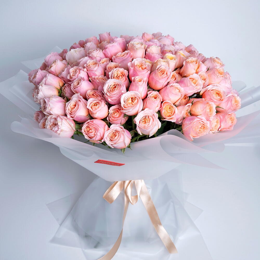 Ribbon - 1 pcs wrapping paper - 10 pcs premium peony spray rose - 51 pcs