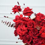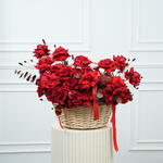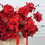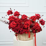 Eucalyptus - 2 pcs Basket - 1 pcs sanguisorba - 2 pcs red premium open roses - 51 pcs