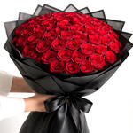 Commanding attention and radiating passion, this striking bouquet showcases 51 velvety red roses elegantly wrapped in sleek black paper. The deep red roses symbolize enduring love, devotion, and desire, while the bold black wrapping adds a modern, dramatic flair. Perfect for Valentine’s Day, anniversaries, proposals, or any grand romantic gesture, this bouquet makes a statement of love that cannot be ignored. ✨ Go beyond ordinary. Order this luxurious bouquet of 51 red roses today and gift an unforgettable expression of love.