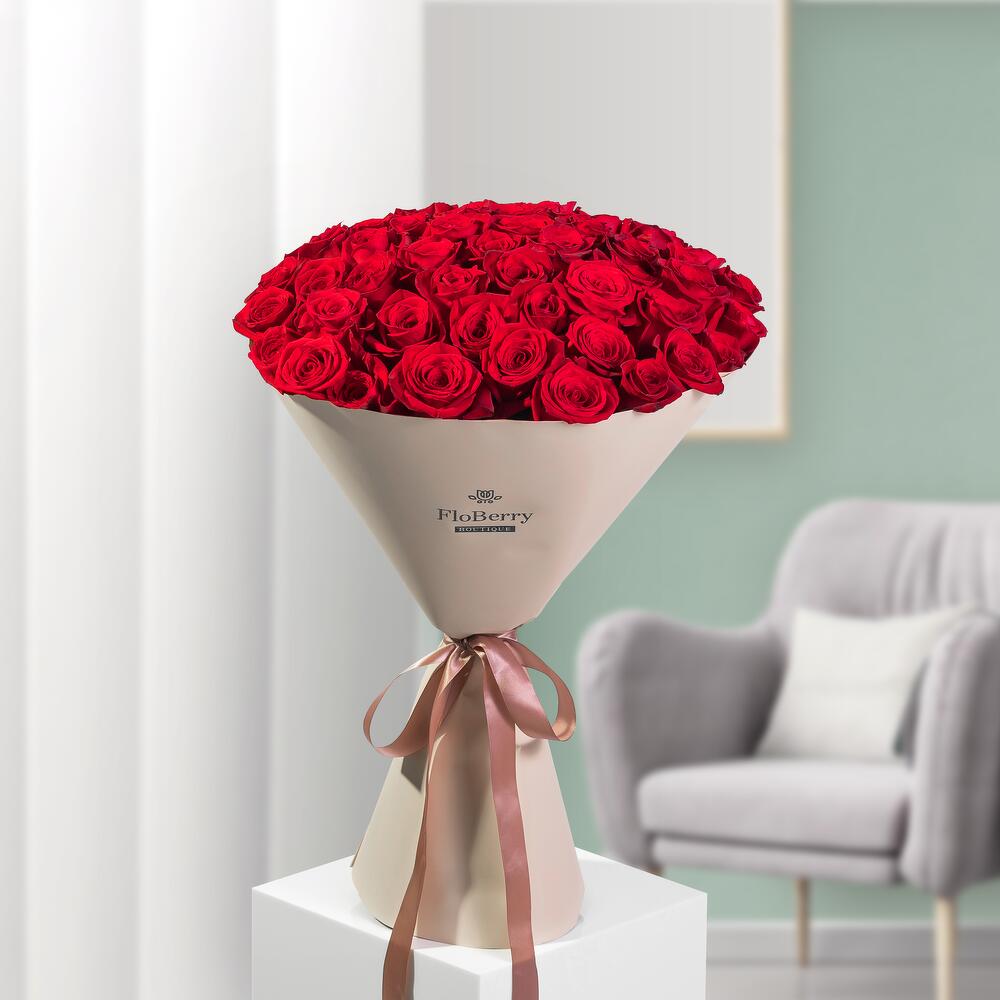 Introducing our magnificent 51 Roses Bouquet, an opulent creation meticulously designed by our skilled florists. Overflowing with vibrant roses and lush greenery, this lavish arrangement embodies elegance and heartfelt emotion on a grand scale. Customize your gift by selecting from our range of wrapping options, adding a personal touch to this breathtaking display that surpasses words. Each bloom and verdant accent is thoughtfully placed to craft a profound expression of love, admiration, or gratitude. This extraordinary bouquet amplifies sentiments, enveloping the recipient in deep warmth and appreciation. Experience the abundance of 51 roses, paired with lush greenery, in a truly grand and meaningful gift that speaks volumes without needing a single word.