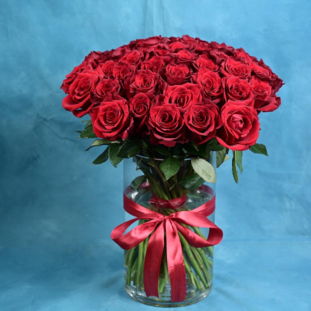 Flower vase of 51 red roses