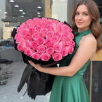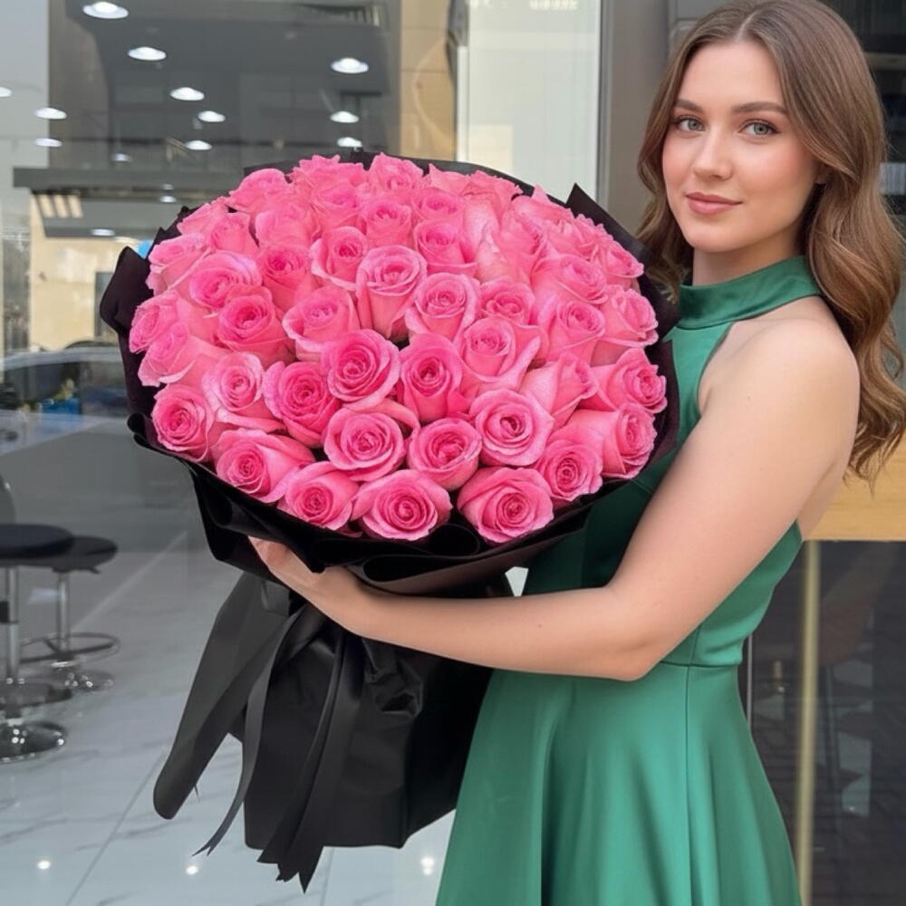 A striking bouquet of premium pink roses, artistically arranged to make a bold and elegant statement. Each bloom radiates beauty, passion, and sophistication — the perfect expression of love and admiration. Wrapped in luxurious black paper and tied with a sleek satin ribbon, this bouquet blends modern elegance with timeless romance. Whether for a birthday, anniversary, or a romantic surprise, it’s designed to leave a lasting impression. Perfect for: Romantic occasions, luxury gifting, and heartfelt celebrations.
