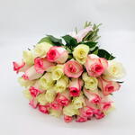 51 white and pink roses bouquet