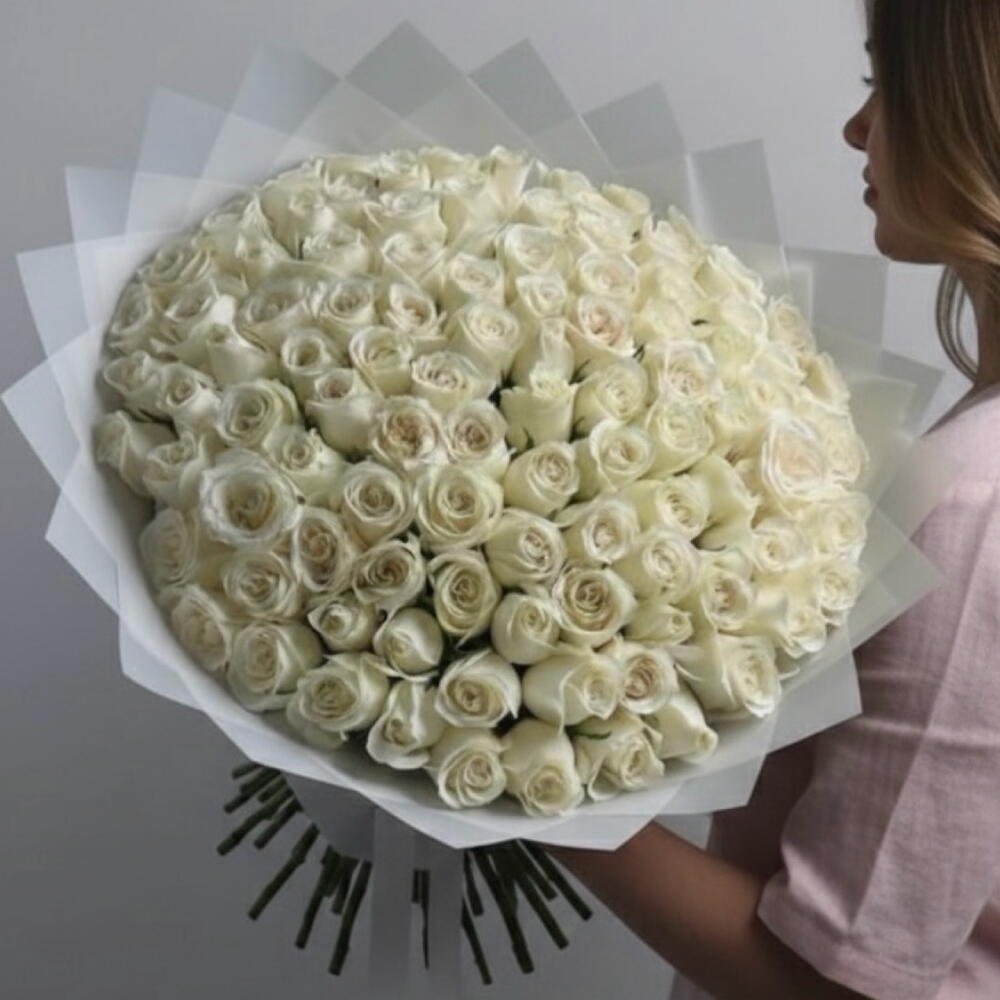 This beautiful bouquet contains 51 white roses in stylish wrapping.