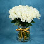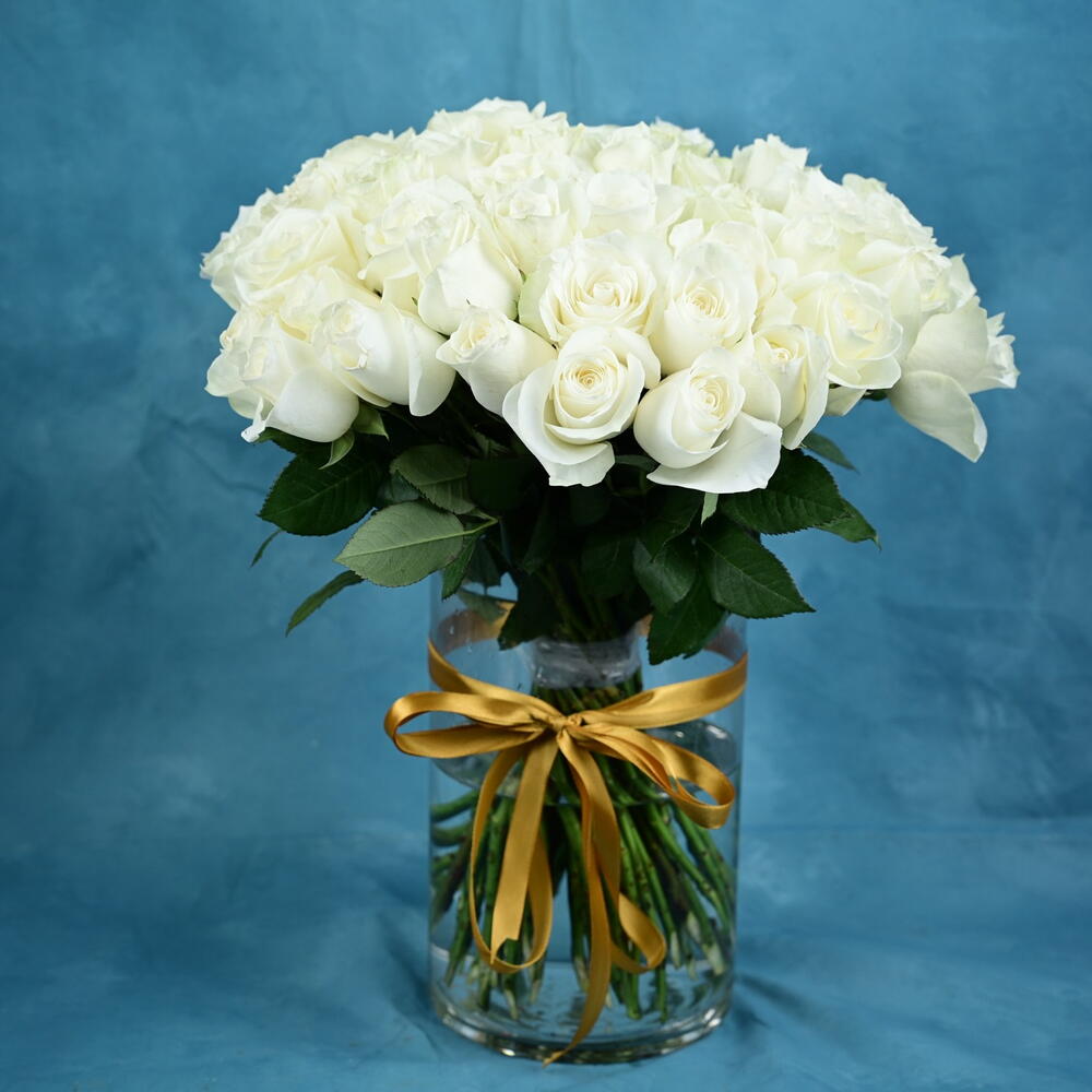 Flower vase of 51 white roses