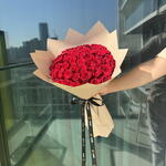 This stunning mono bouquet is curated with 55 hand-picked red roses, masterfully bundled and wrapped elegantly in a cream wrap. Gracefully tied with a single sleek black ribbon, this bouquet plays the perfect symphony of love and passion. To make your gift even more personal, it comes with a beautifully designed message card ready to articulate your deep sentiments. Simple, classic, and expressively charming, this bouquet is a perfect love gesture to make a lasting impression.