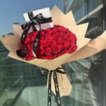 black ribbon - 1 pcs message card - 1 pcs cream wrapping - 1 pcs red roses - 55 pcs