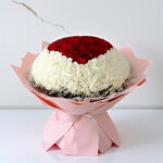 pink wrapping - 10 pcs gypso - 25 pcs red roses - 251 pcs white roses - 400 pcs floral tray 55cm - 1 pcs