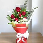 Red rose - 7 pcs Ribbon - 1 pcs wrapping paper - 2 pcs eucalyptus leaves - 1 pcs jamaica leaves - 1 pcs