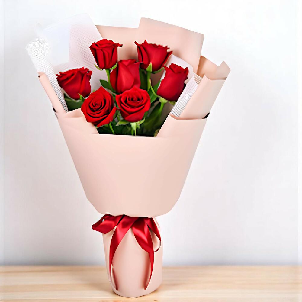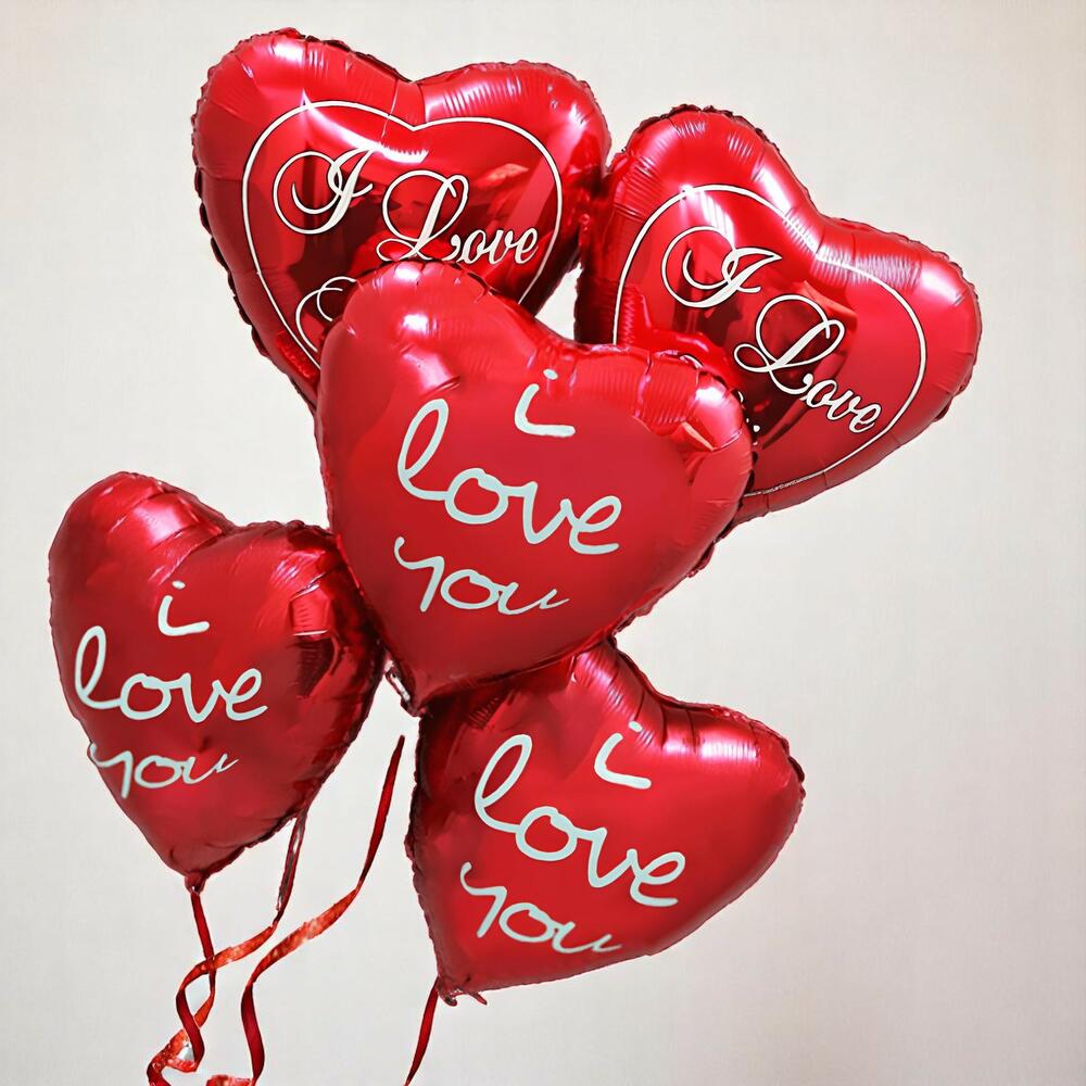 7 Red Roses With Wrapping 5 I LOVE YOU Foil Balloons