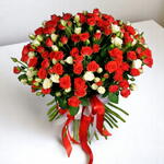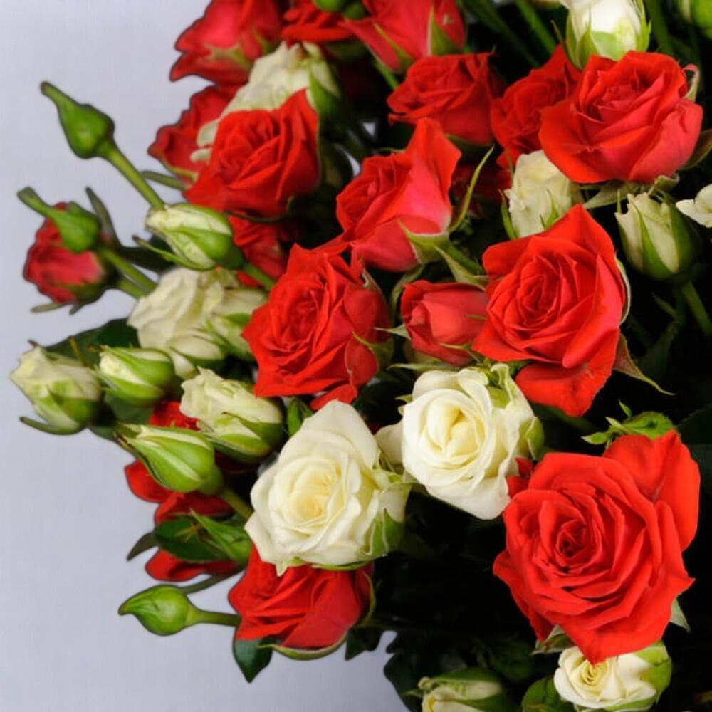 Overflowing with elegance and charm, this luxurious 75-stem Baby Rose Bouquet combines 50 radiant red spray roses with 25 creamy white baby roses, making it a stunning choice for romantic gestures, grand celebrations, or unforgettable surprises. Bound with a vibrant red and white satin ribbon, this bouquet is perfect for anniversaries, birthdays, engagements, or proposals. The delicate blooms and lush greenery create a full, rounded silhouette thats as impressive as it is heartfelt. Care Instructions: To keep your bouquet fresh, trim the stems diagonally under cool water and place them in a clean vase with fresh water. Change the water every 1–2 days and keep the flowers in a cool environment, away from direct sunlight, drafts, or fruit. Remove any fading petals to maintain the bouquet’s vibrant appearance for as long as possible.