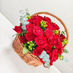 This exquisite Basket of 77 Red Roses is an epitome of elegance and love. Each rose is handpicked to ensure its freshness and beauty, creating a luxurious and dense bloom. This basket can serve as an impressive centerpiece or a grand gesture of affection. Its not just a gift, but an experience that embodies passion, admiration, and romance.